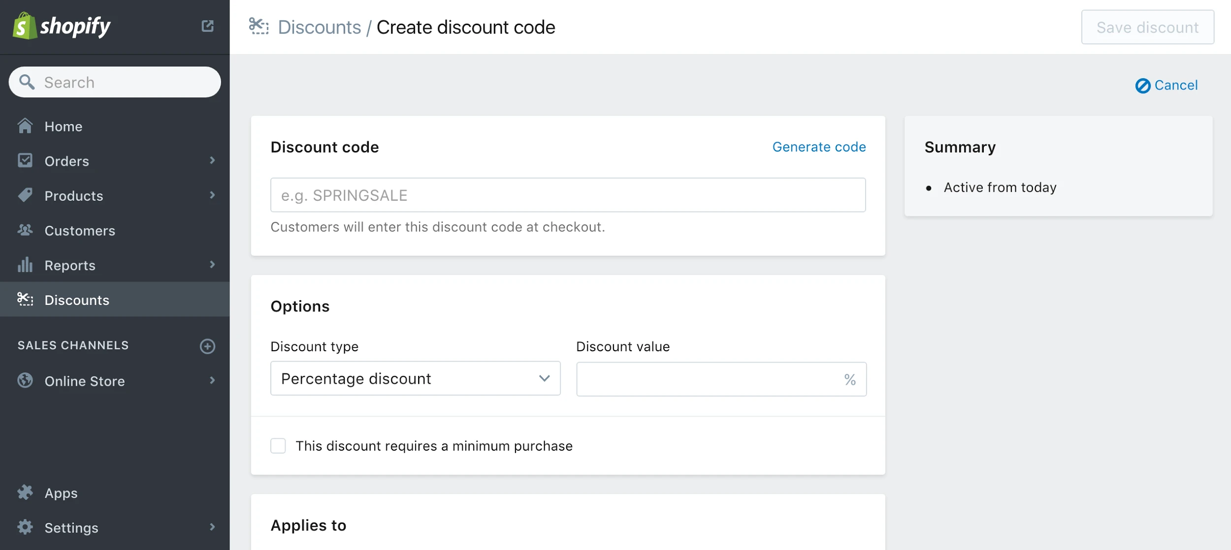 A classic marketing tactic in sales is to offer discounts at different price points. There are many apps on the Shopify store that can help you generate discount codes, percentage discounts or offer free shipping.