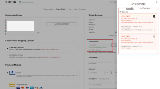 One example is from Shein, know which easily shows customers what vouchers are available at the checkout page:
