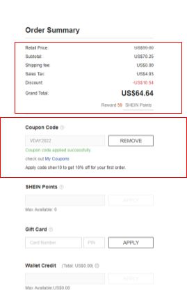 Customers are more likely to enter a coupon code when they see a field for it. Customers typically open a new tab and search for discount codes on Google if the coupon codes aren't automatically applied or aren't prominently displayed on the website. The risk is that there’s a possibility that shoppers will discover the product at a lower price elsewhere while they're searching for it.