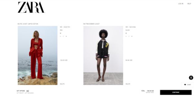 Here's another example from Zara in which the product photos in the cart completely match what's on the product pages.