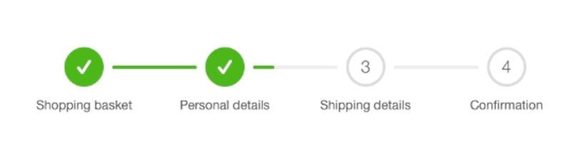 A progress indicator shows all the checkout stages on a mini-map. It commonly involves visual indications that identify which steps are actually ongoing and which have been completed.