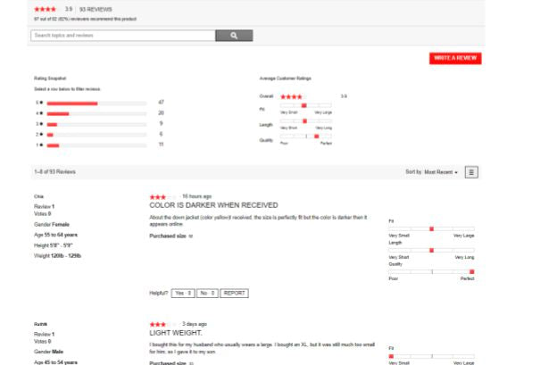 The above reviews are from Uniqlo which display all the pertinent information a potential customer might need from the gender, age up to how the apparel fits. It’s very helpful for customers in making a decision.