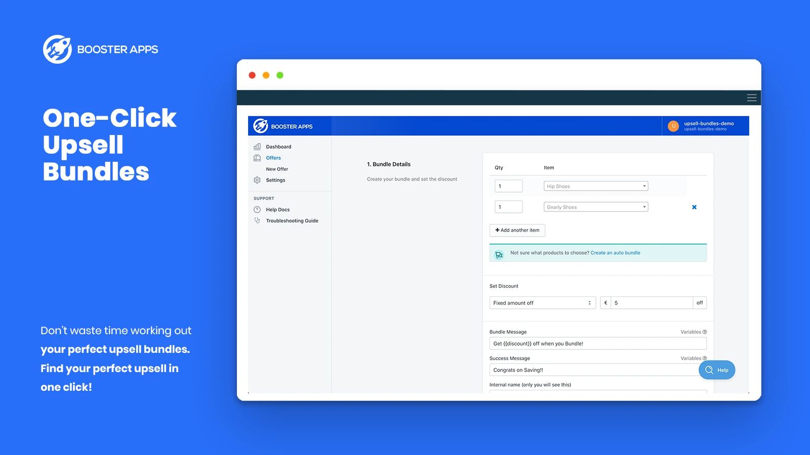 Upsell Bundled Products makes shopping easy by being a bundling app first, and second, as an app that tells customers how much money they save when they buy products. Customers will also be delighted at how quick shopping is with just a click.