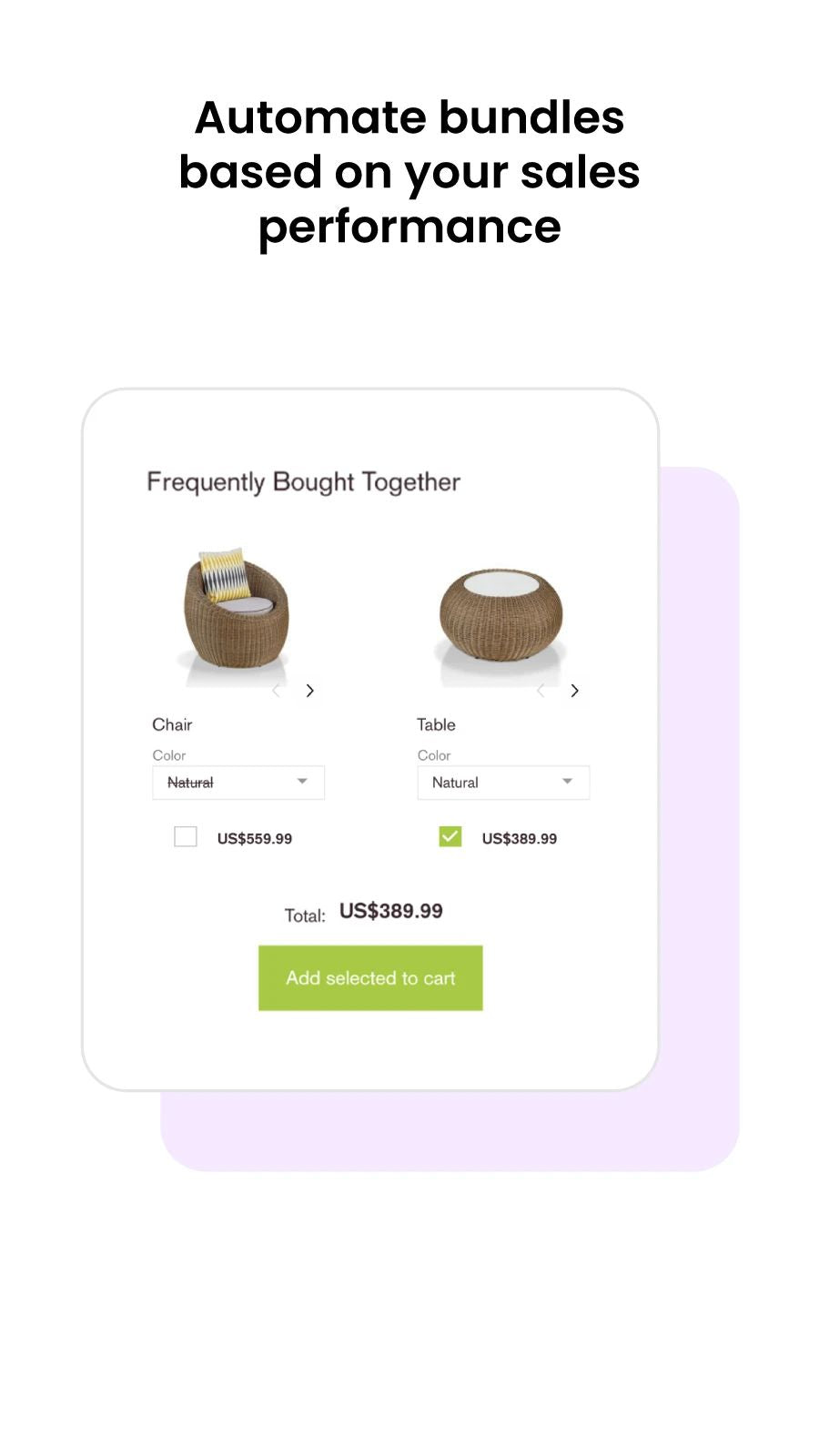 Another good factor is that it is very easy to maintain. This is thanks to app's algorithm that identifies which products are bought together and readily displays them to your customers. This leaves you with little else to do. The sophisticated AI also allows you to offer your customers a discount if they buy the recommended bundle. Additionally, even if consumer preferences change, the app will recognize this and propose new products to complete bundles. This unique feature keeps your relevant and is also an efficient way to upsell.