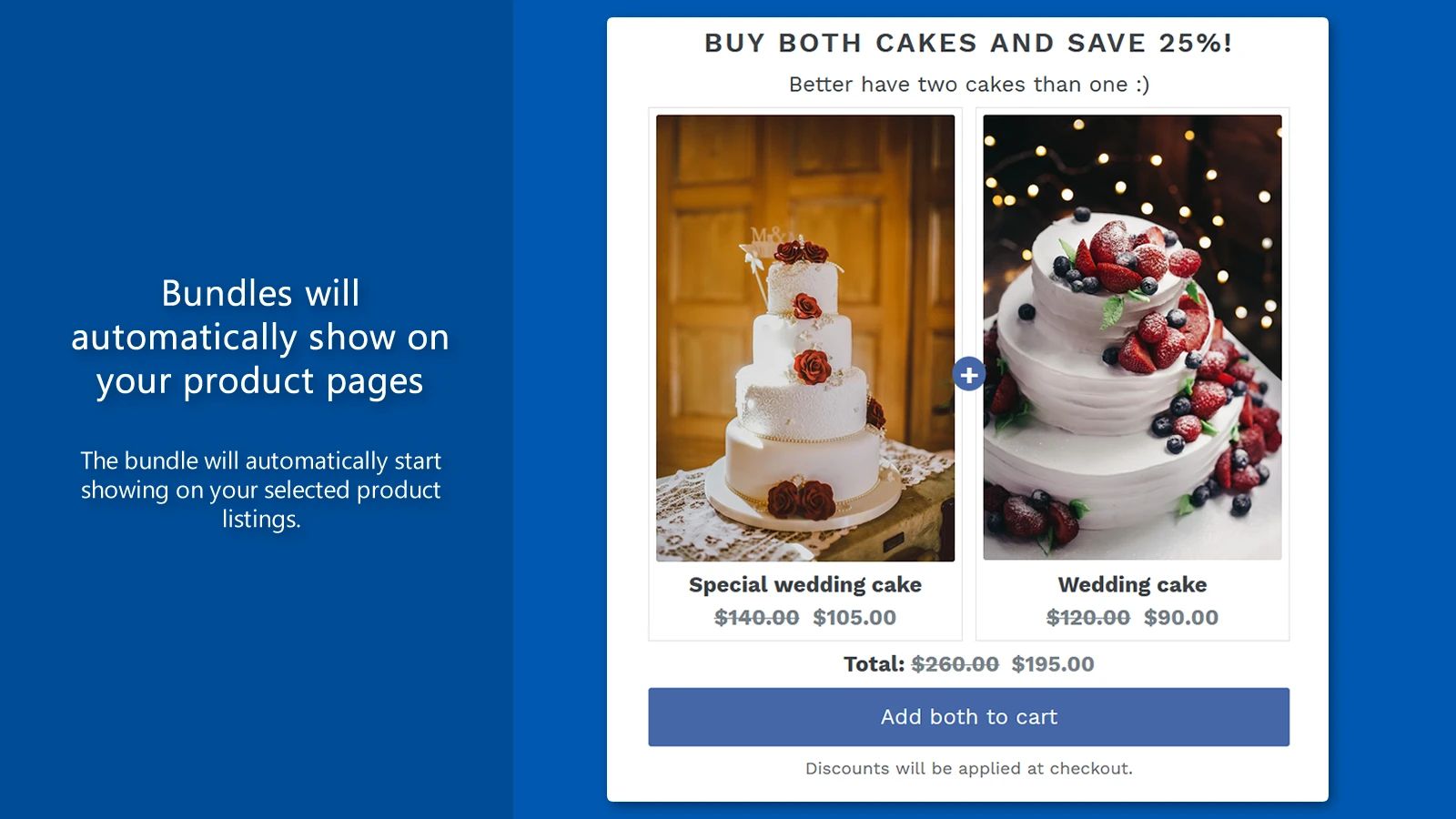 - Quick and easy to use: Choose products that you would like to bundle together, add discount rules for these products, and it's done.