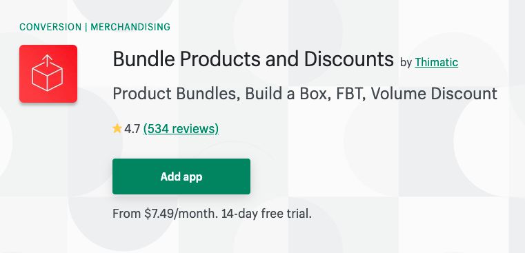 This app by Thimatic is another popular app that helps you increase your sales by allowing you to sell several products simultaneously. You can set up a separate page for all your custom bundles, where potential customers can quickly add products to their cart.