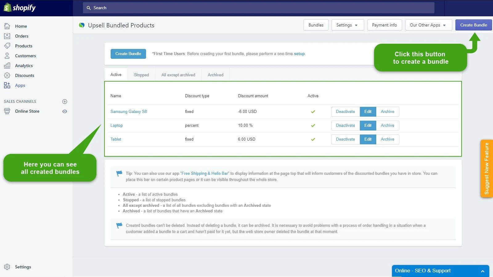 - Unlimited Discounted Bundles: Encourage customers to buy more by offering them some savings. You also have the option to create unlimited discounted bundles.