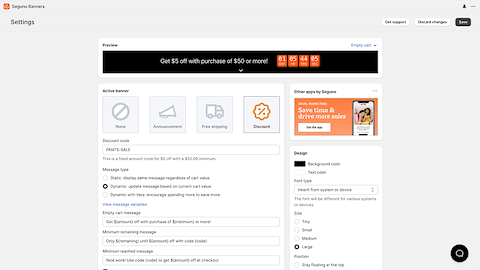 Seguno’s Dynamic Banner Suite not only helps you create eye-catching banners but also integrates discount codes directly into them, driving conversions.