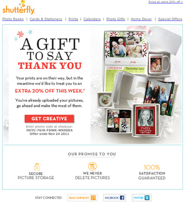 For example, you could give your brand a tone and voice. If you see your brand as a friendly, and helpful brand, then this can help you craft the copy. Here’s an example from Shutterfly where their tone of voice is warm, reassuring and helpful.