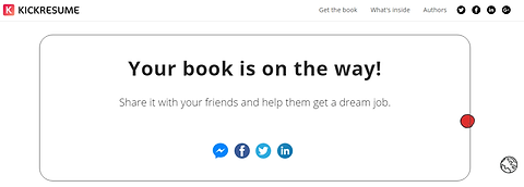 Here’s one from KickResume where one of their services is offering an eBook that guides jobseekers. After a customer orders it, the Thank You page encourages them to share it on social media with an enticing copy.