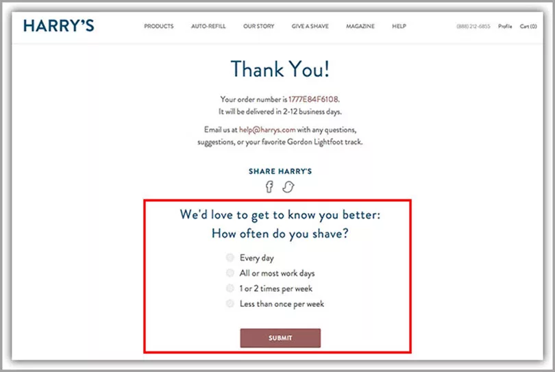 Another good way to make use of your Thank You page is to conduct a very quick survey to get to know your customers a little bit better.