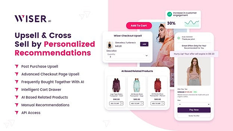 Wiser leverages AI to provide smart product recommendations, including upsells and cross-sells, enhancing the shopping experience and boosting sales.