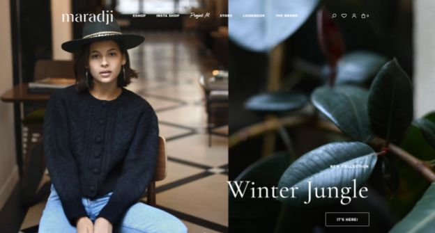 Clothing brand maradji, highlighting their new collection on their landing page.