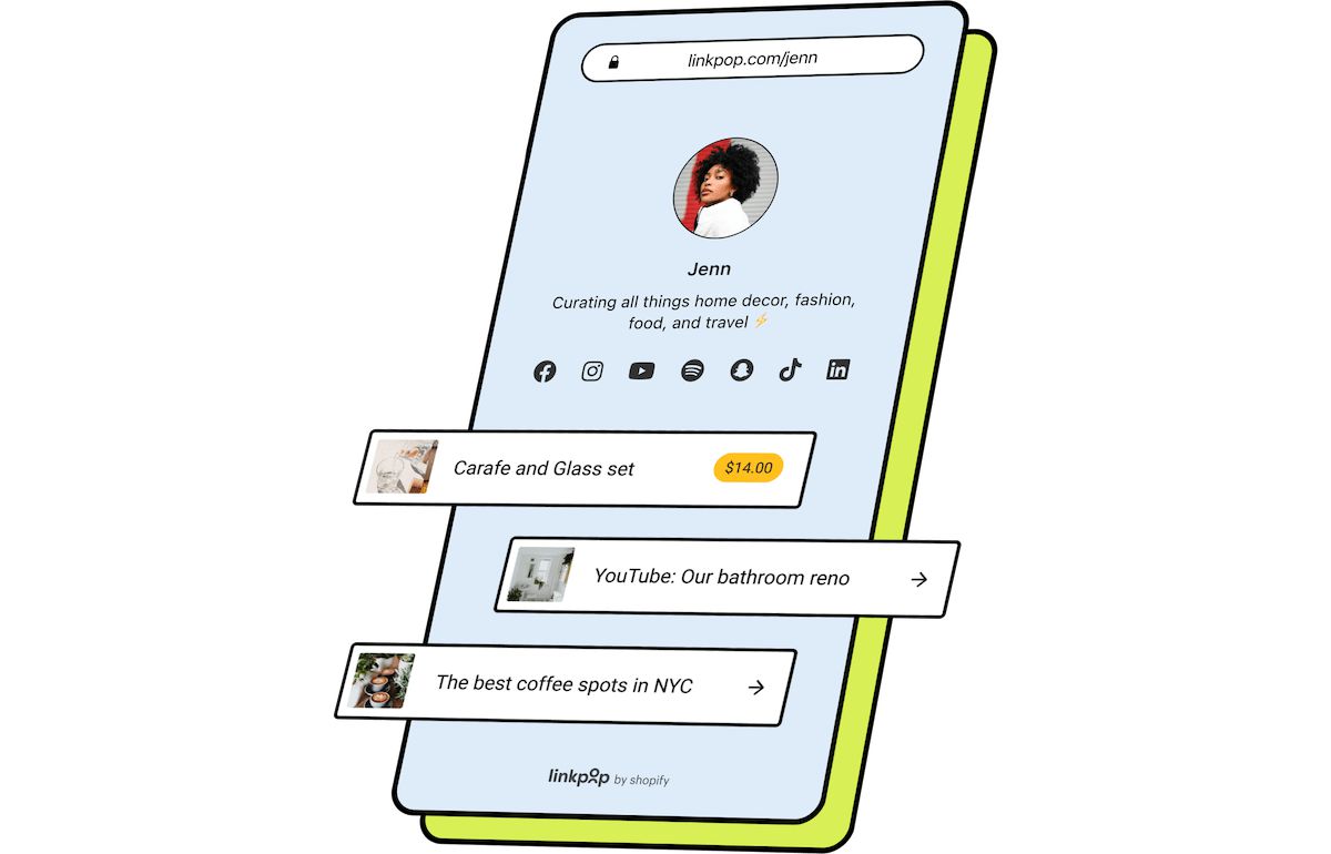 With Linkpop, Shopify hopes to address this issue. It is Shopify's own link in bio tool, created specifically for eCommerce and powered by the platform's fast and secure checkout.