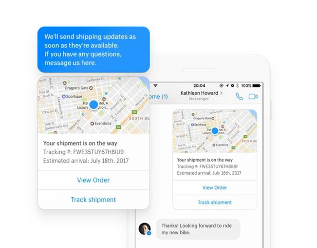 Another awesome feature on Facebook Messenger is that you’ll be able to offer your customers shipment updates, tracking numbers, and a View Order button so they can see when their order will arrive. That way, your customers may purchase from the convenience of Facebook.