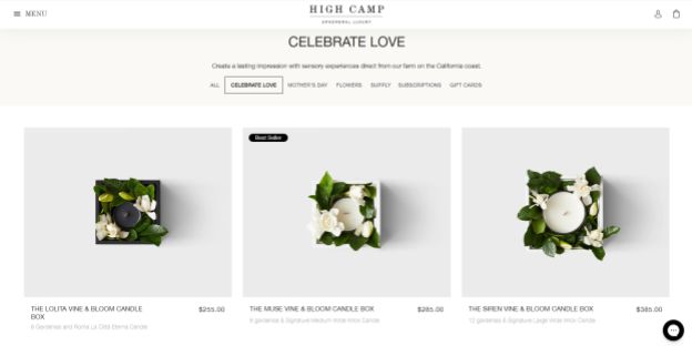 Flowers are always nice but sometimes you want a gift that stands out from the crowd. High Camp elevates the typical bouquet or scented candle gift into something more beautiful, more upscale and more memorable. Today High Camp is the only company in the US to ship directly to consumer cut-to-order High Camp Gardenias quality vines and blooms year-round from its farm in the beautiful coastal valley of California. The packaging, the boxes, and the website are all gorgeous.