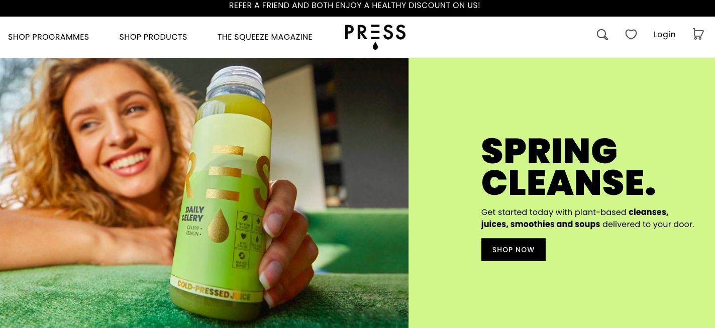 PRESS started with a simple idea: to make it easier for people to eat and drink well. If all the good stuff tastes amazing and it's easy for people to get, then it's a winning formula. PRESS is a relatively new company that makes cold-pressed juices and cleanses.