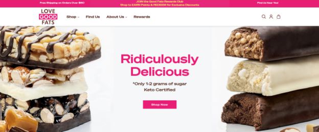 Just like Skinny Teatox, Love Good Fats shows you all the benefits right away and one can’t help but be intrigued by the sweet-looking bars with only 1-2 grams of sugar. As you scroll through you’ll find more reasons to love the brand.