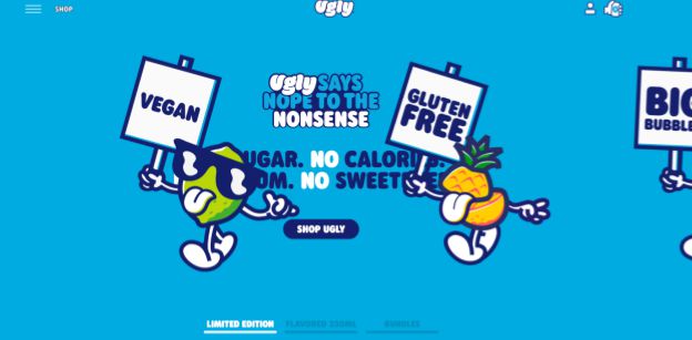 Fun brand with a fun website. Ugly Drinks is a beverage company that offers sparkling water, flavored seltzers and energy drinks without the sugar or any sweetener.