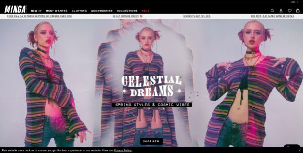 London-based, Minga, sells edgy and odd new wave women's fashion that is both edgy and bizarre. In addition to ASOS and Dolls Kill, Minga's style has been praised by celebrities in Bustle, Daily Mail, ELLE, and Glamour.