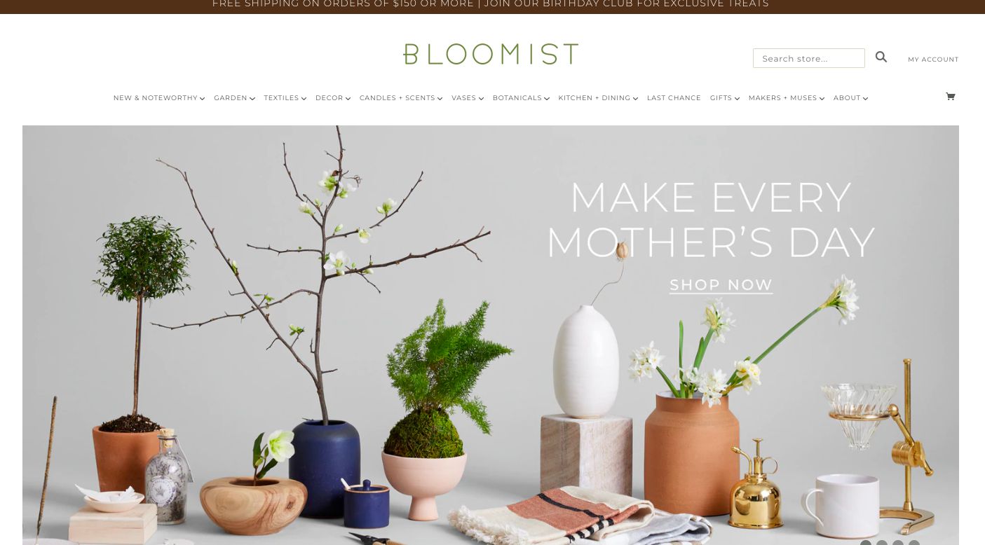 Bloomist provides a curated selection of artisan goods and green-cessories to make a natural home. The Bloomist family of brands is made up of collaborators, design experts, floral stylists, curators, producers and makers who all contribute to social change and offer minimal impact on the environment. You’ll find gorgeous vases, planters and botanicals here.