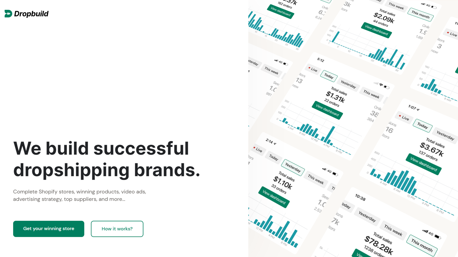 Just place an order via their website and Dropbuild will create your full unique Shopify dropshipping store in seven days or less. Its further features include the following: