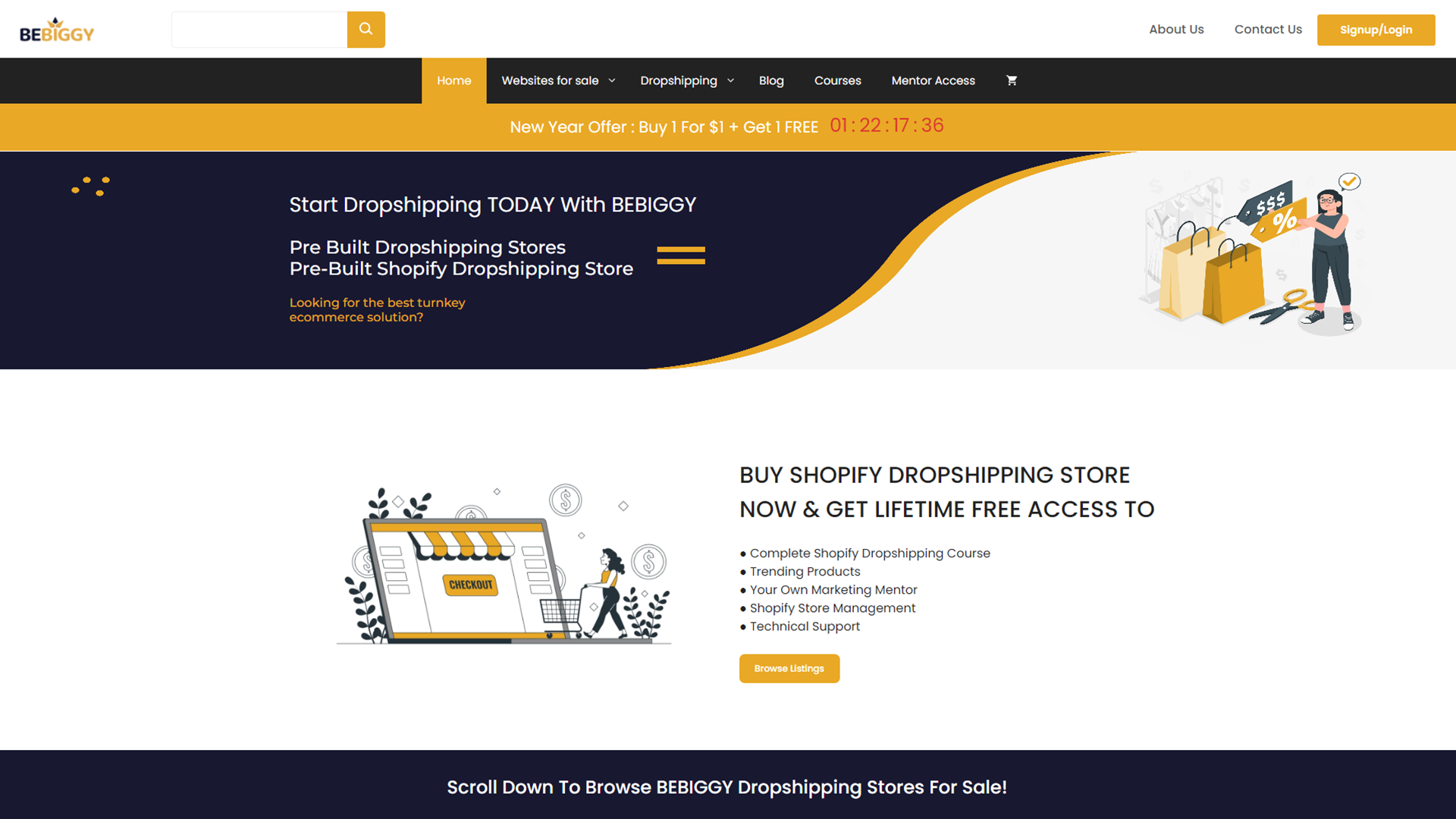 Bebbigy.com sells premade Shopify dropshipping stores in a range of sizes, so you can decide what scale of business you want to take on. Their premade starter stores come with between 50 to 200 products, which start at $299. Courtesy of their after sale's team, you can have lifetime access to marketing courses, and customer support.
