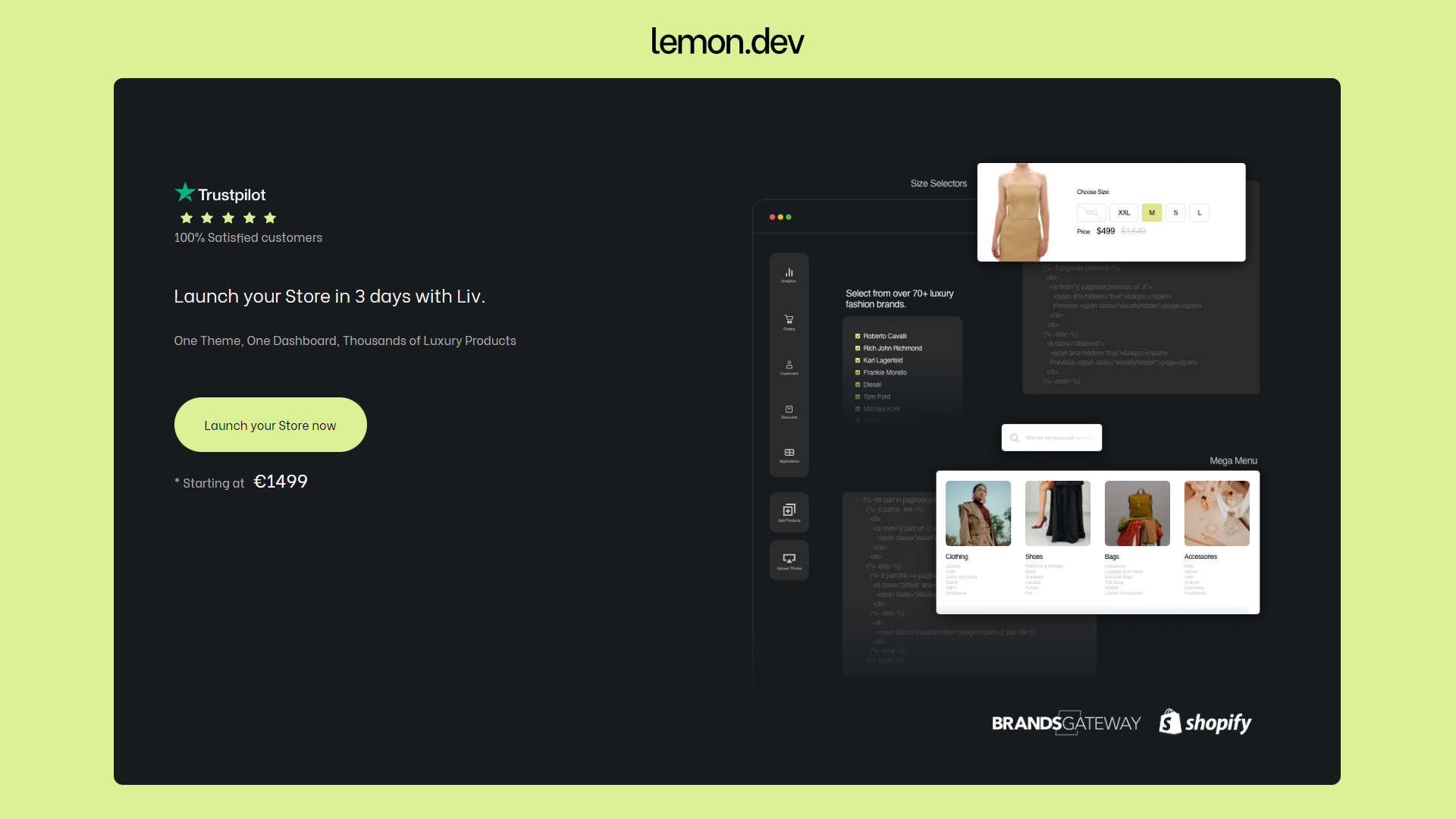 LemonDev is one of the leading providers of Turnkey dropshipping stores. They are fully up-to-date to custom-built any type of dropshipping store. With their well-developed Shopify theme named Liv, which is fully customizable, they easily match their clients' brand image, needs, and requirements. Additionally, they provide custom-made solutions for stores based on other themes—all aimed at providing their clients with seamless solutions and dropshipping experience.