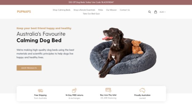 Customers will find their website very easy to navigate with its straightforward and simple layout. Just on their homepage alone, you’ll be able to select their bestsellers and the size you want thanks to the intuitive buttons. A few animations here and there put life into the website, accompanied by warm and cozy photos of furry friends.