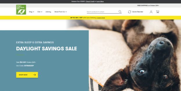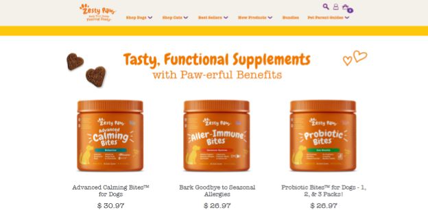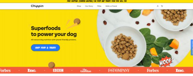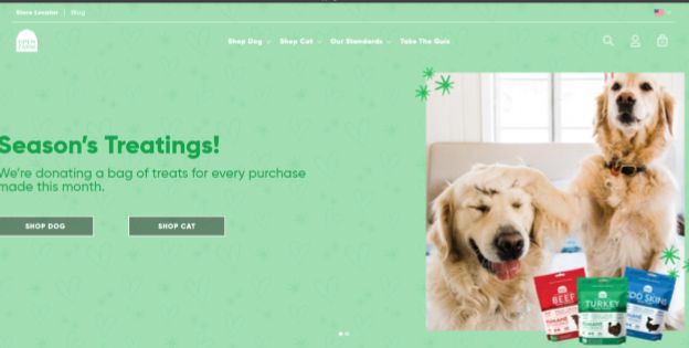 You get greeted by a bright and vivid yellow banner and some comic-themed aesthetics. The products pop thanks to the way the graphics and layout are designed. You instantly know what they’re all about, “superfoods” for your pets. It’s very unique and one of a kind and one of the standouts on this list.
