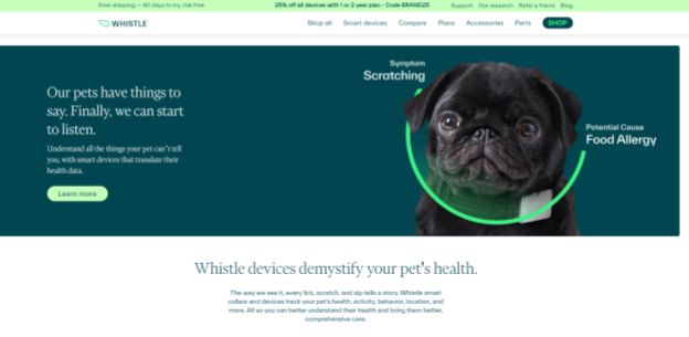 Each product's characteristics and benefits are clearly laid out on the company's website. Customers will find it easy to locate what they need because the overall design is clean and intuitive. They’ll also feel more at ease since the product descriptions are thorough and well-written. Plus, there's even a chart to assist you to compare gadgets and choose which gadget is best for you. The required subscription plan for pet owners that allows for real-time monitoring and video chat with veterinarians is also laid out clearly.
