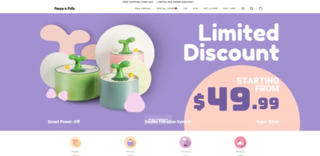 Pawineer uses huge graphics for their banners, which grab your attention and then highlight their best sellers as you scroll through. They once again make use of huge, high-quality photographs to demonstrate the benefits of their goods. The playful and easygoing web copy is commendable, and it effectively promotes the merchandise.