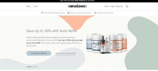 The Anxious Pet website makes use of a calming color blue that perfectly matches their products and vision. The simple and playful graphics provide their website with some character as well. Everything is very clean and uncluttered so customers will be able to navigate the website easily.
