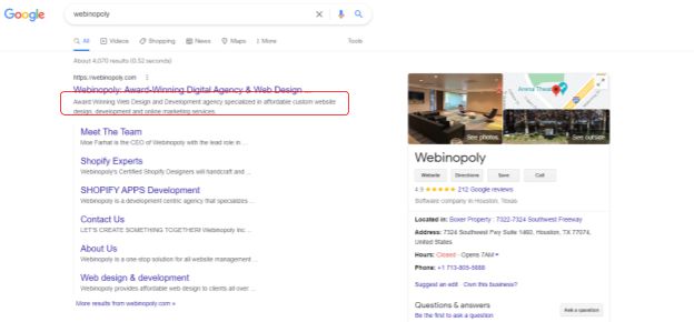 Reading other companies’ meta descriptions, you would believe that writing one is easy. However, it is much more than that. The 155-character restriction also implies that your description should offer a quick summary of what your website is about while making it interesting enough that a potential customer would click on it.