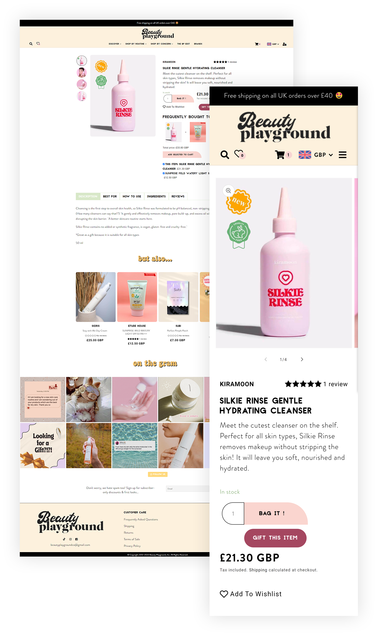 You might think that creating a unique editorial-style storefront is simple—just throw some products up on a website and call it a day. But you'd be wrong. We've worked with Beauty Playground UK for months now. Their team is incredible, and they have such a strong vision for what they want their brand to be that it's been an honor to help them achieve it.