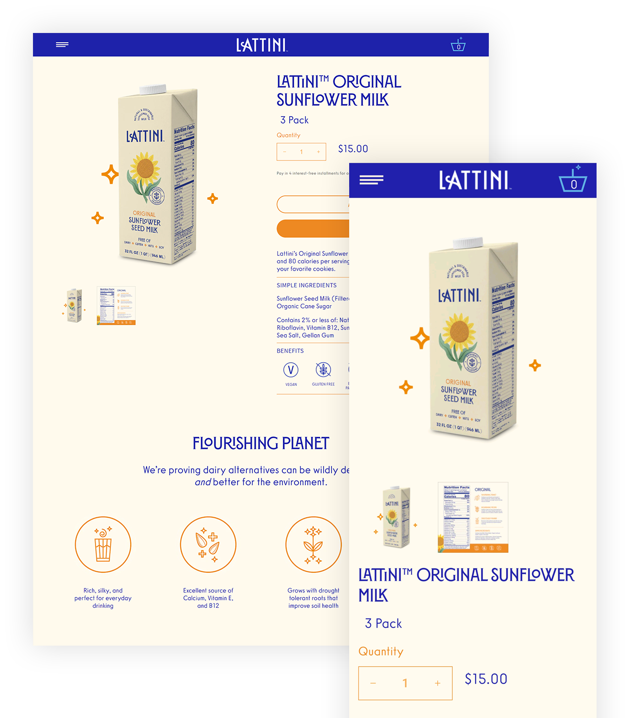 Lattini has always been committed to creating great dairy alternatives from the freshest ingredients. They're passionate about doing things the right way, and that's why they wanted to create a website redesign that reflected their values and let customers learn more about why Lattini is a fantastic dairy alternative.