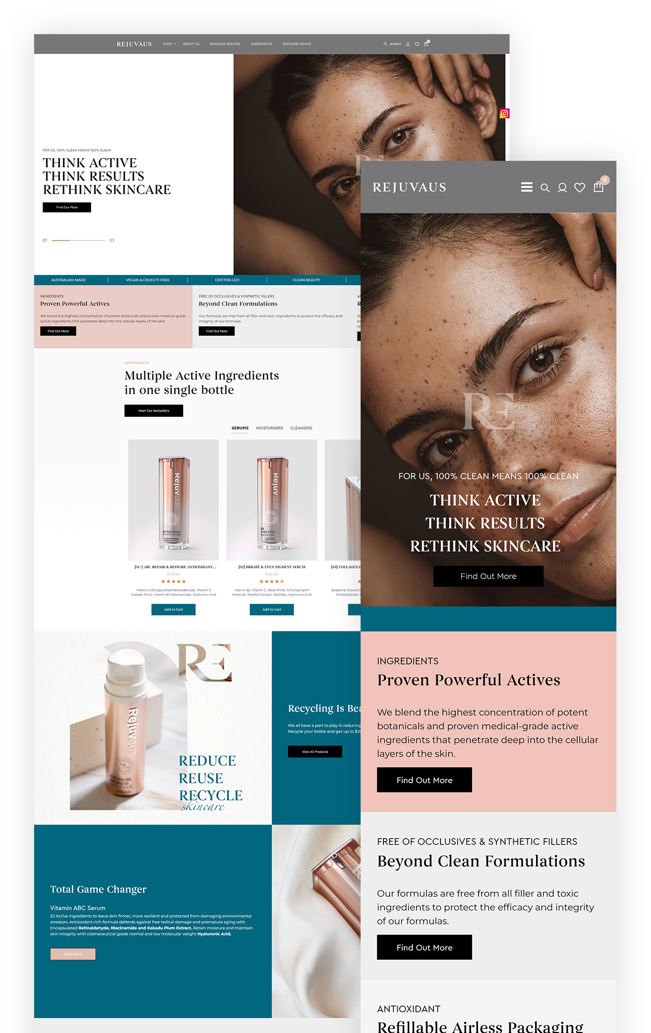 Product photos can only do so much. So, with such an innovative brand, our team set out to create a shopping experience that embraces the critical tenet of Rejuvaus: innovation and making a difference. We came up with a genuinely unique product presentation idea to do this.