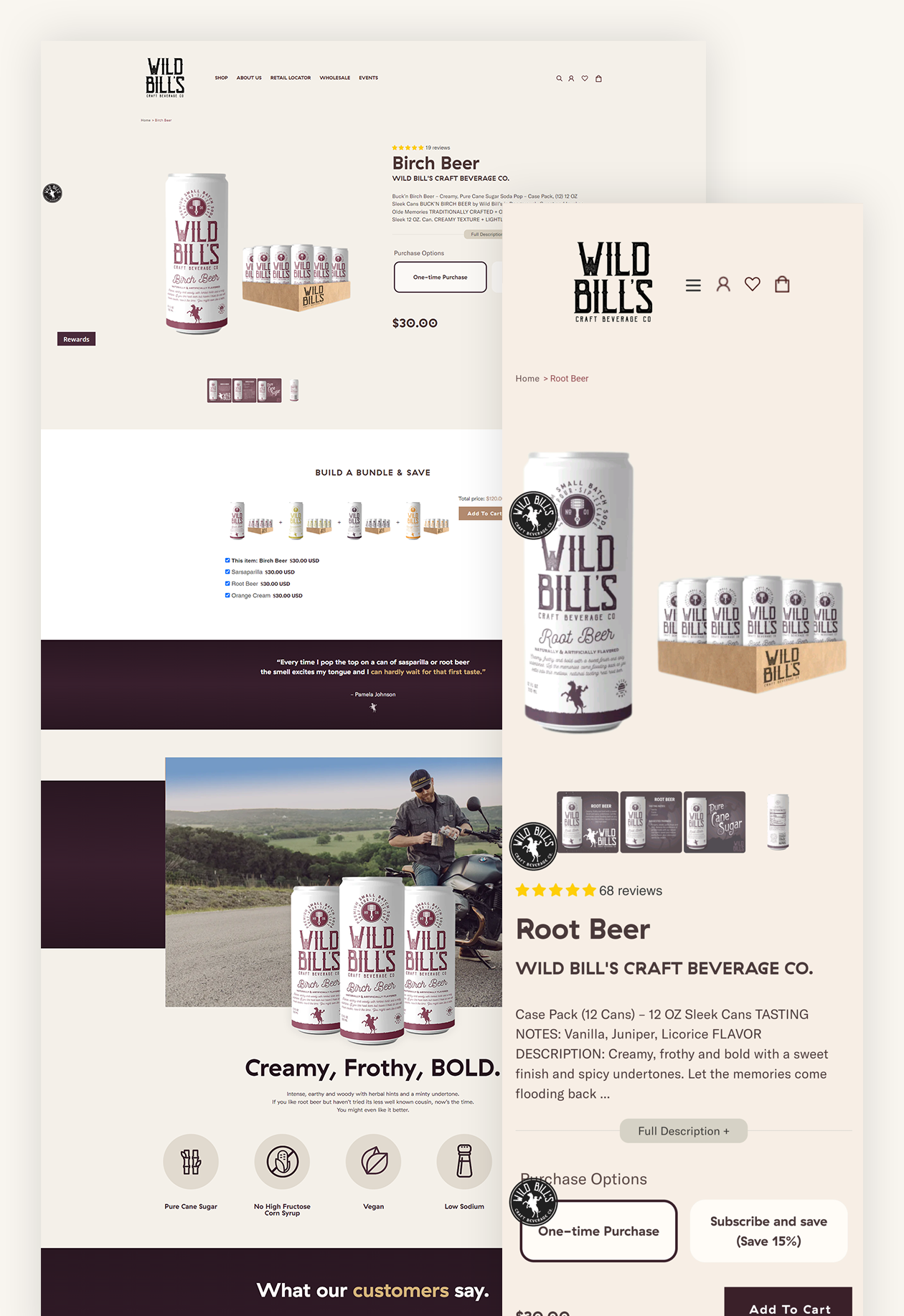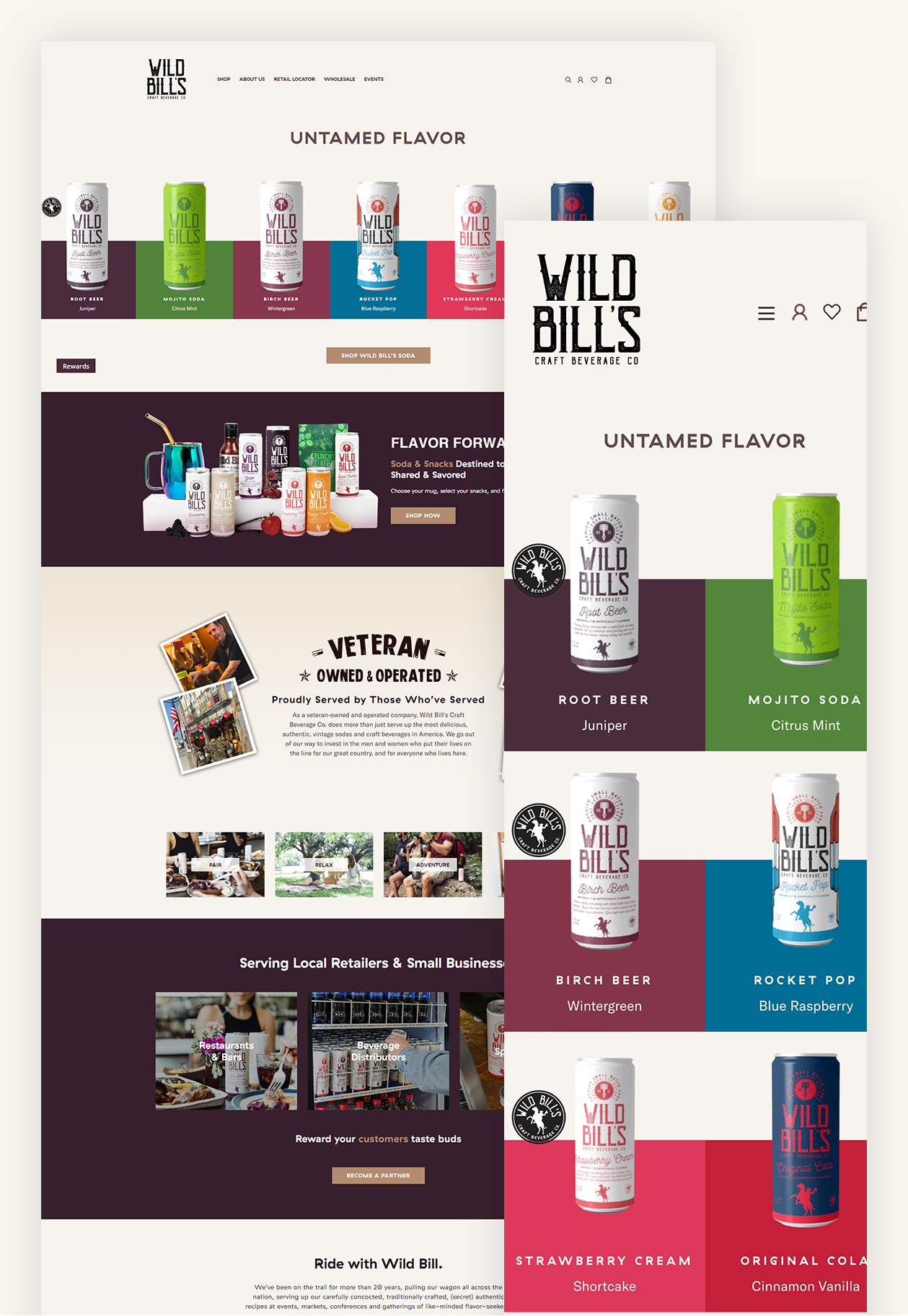 Wild Bill's Craft Beverages wanted to be able to showcase their products in a way that reflected their brand story and values, which are rooted in their love for nature and community. They also wanted to make sure that each section of the site could be easily navigated by users, who will be learning about the company's products.